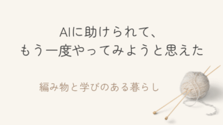 ヴォーグ学園の通信講座で次の課題「帽子」に挑戦中。模様編みが浮かび上がる楽しさと、子育ての合間に少しずつ進める学びの記録をお届けします。