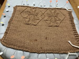 一通り編み終えたので、スチームアイロンをかけて整形中。